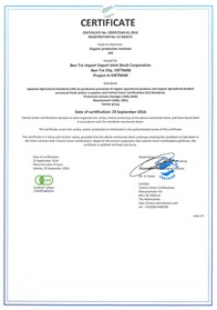 Trong quá trình sản xuất, tất cả các công đoạn đều được kiểm soát chặt chẽ từ nguồn nguyên liệu đầu vào đến khâu sản xuất chế biến, tuyệt đối không sử dụng hóa chất độc hại, chất bảo quản hay chất tạo màu & mùi vị, hướng đến sản phẩm đạt chuẩn quốc tế. Sản phẩm của Betrimex đã được cấp các chứng nhận tiêu chuẩn quốc tế như: ORGANIC (USDA, EU), BRC, FDA, HALAL, KOSHER, BSCI, FSSC 22000...